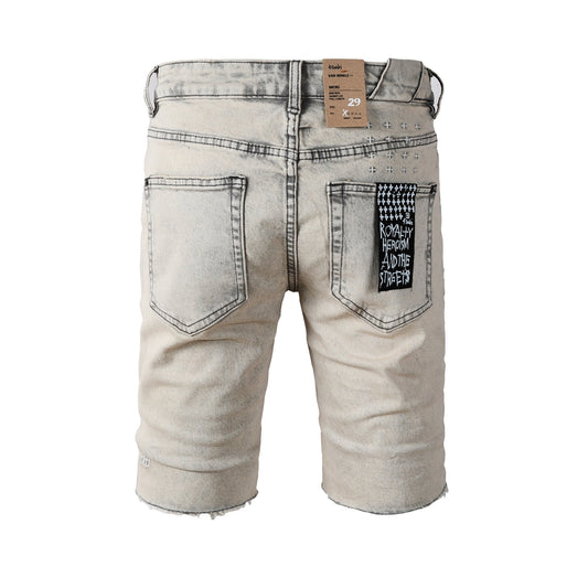 The New Jeans Mens Personality Trend Fashion Hole White Jean Shorts 5021