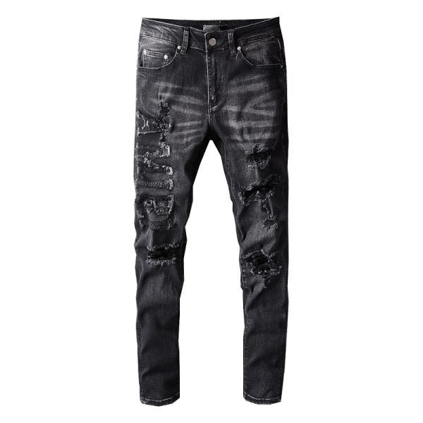 Jean Slim Fit Noir Homme 698 avec Stretch Confortable et Détails Patchwork