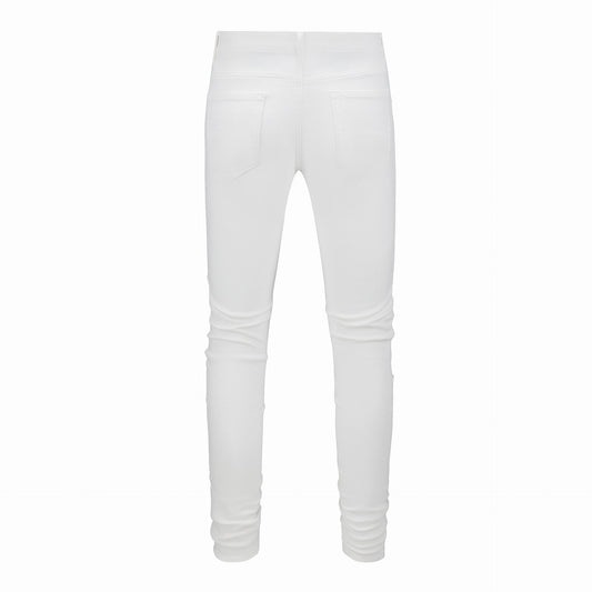 Men's Tight Fit White Jeans with Rhinestone and Patchwork for Street Style 625