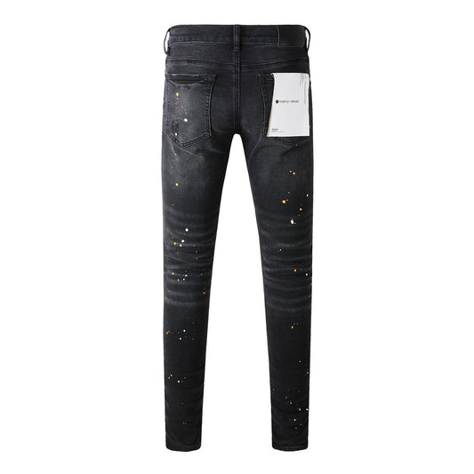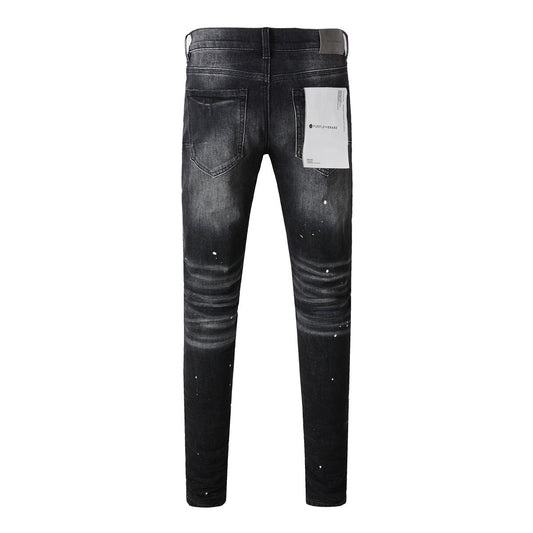 Jeans Purple Brand With High Street Black Paint Distressed (9002-7025) Fashion Pants