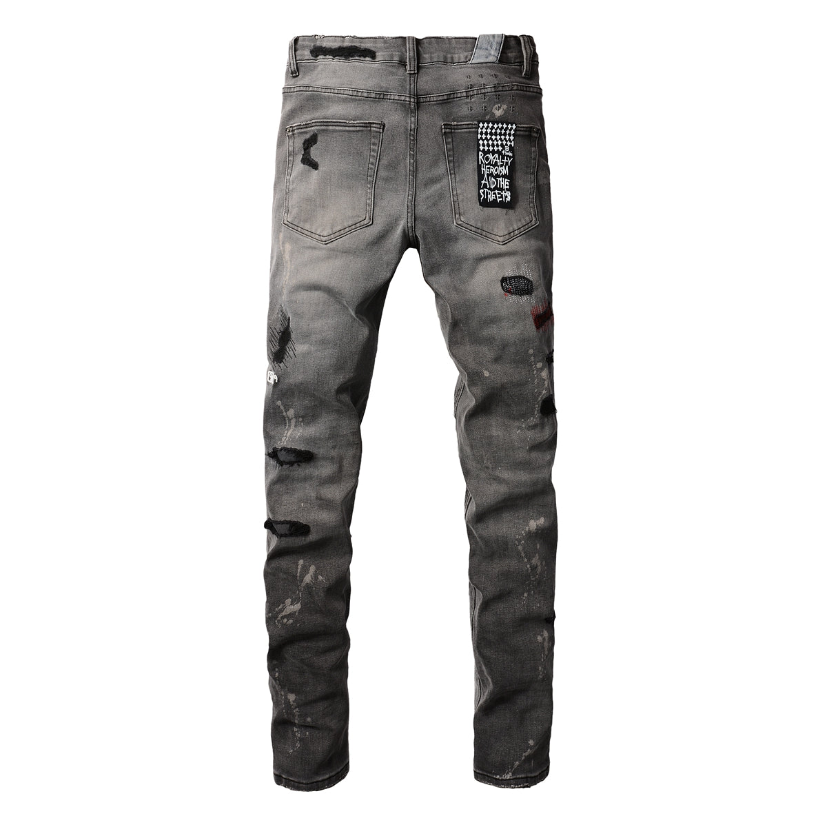 Casual Gray Skinny Jeans with Bold Distressing 3014