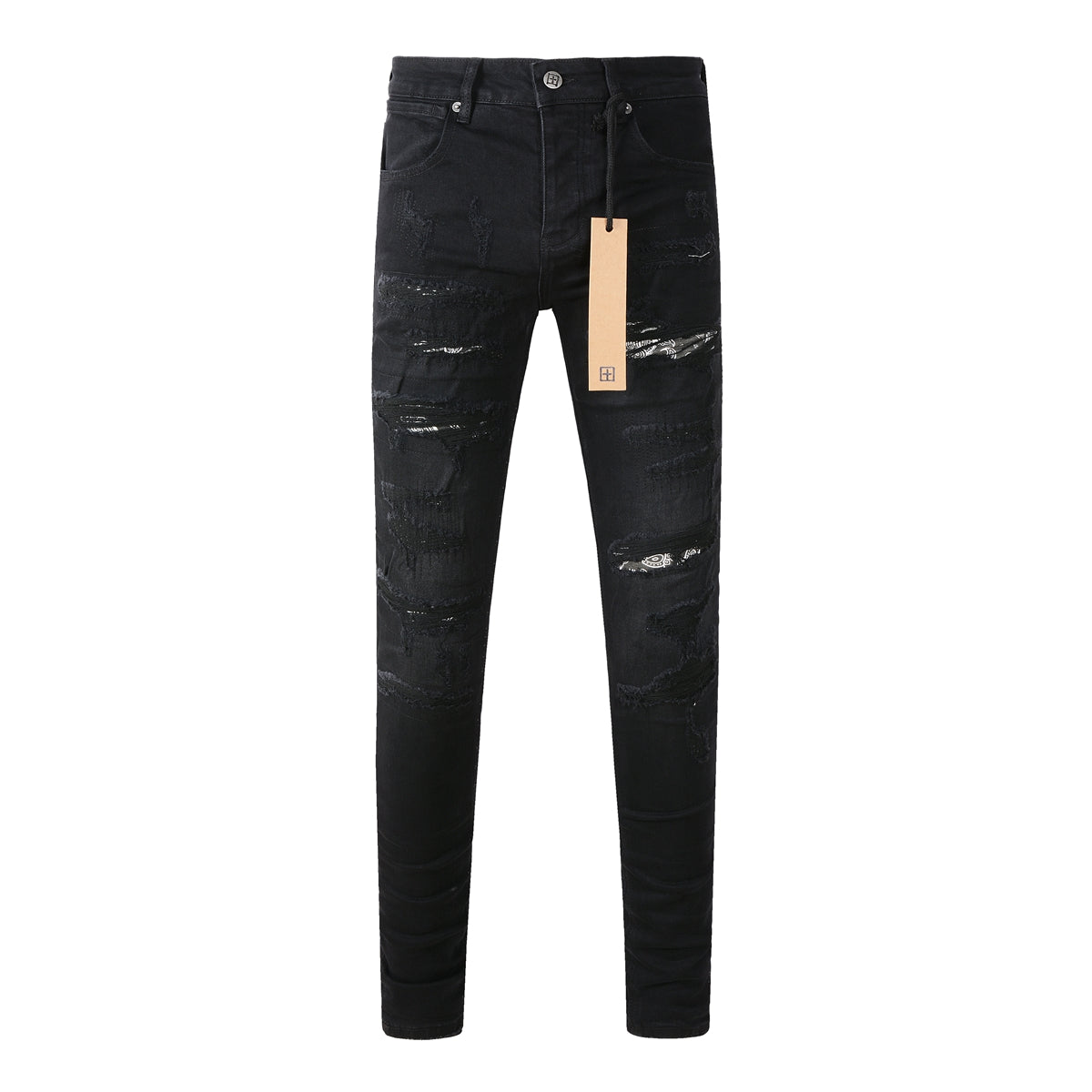 Jet Black Slim Fit Jeans with Logo Accent 3016